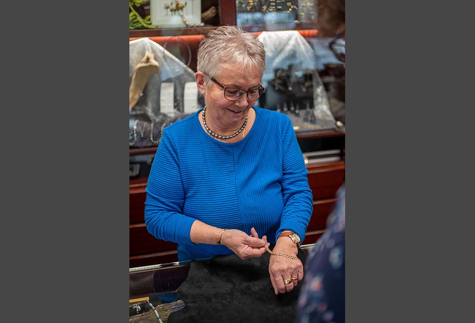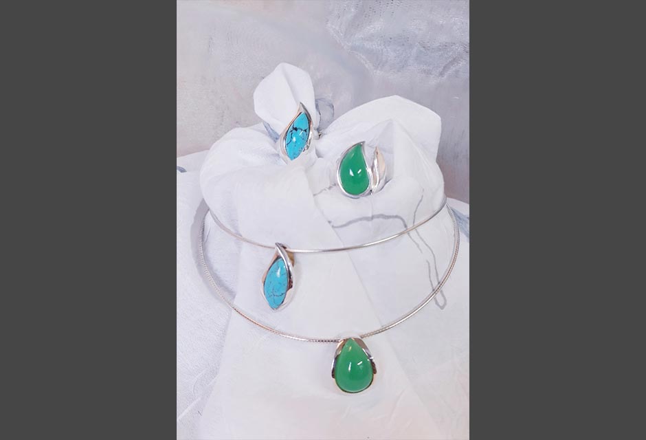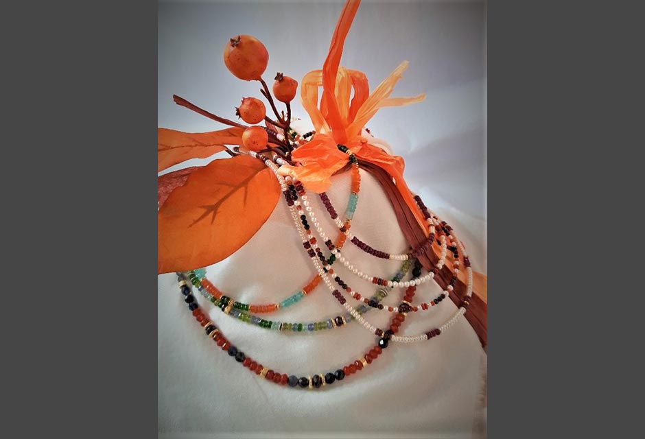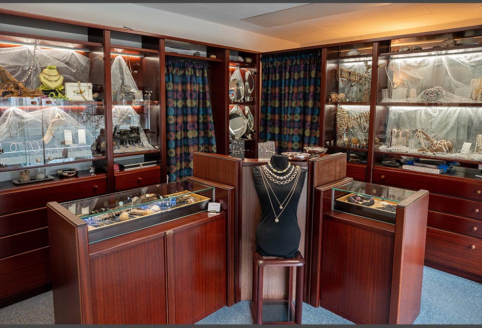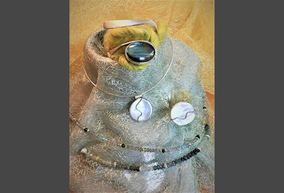 In unserem Lager halten wir neben Handarbeiten aus der eigenen Werkstatt auch fertige Stücke aus Silber oder Gold, sowie eine große Vielfalt an Perlenschmuck und fantasievoll gestalteten Steinketten bereit.